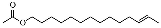 (1)反-12-十四碳烯乙酸酯,(Z)-tetra?dec-12-eny1 acetate,CAS登錄號(hào):35153-21-0,分子式:C16H30O2,結(jié)構(gòu)式如下: