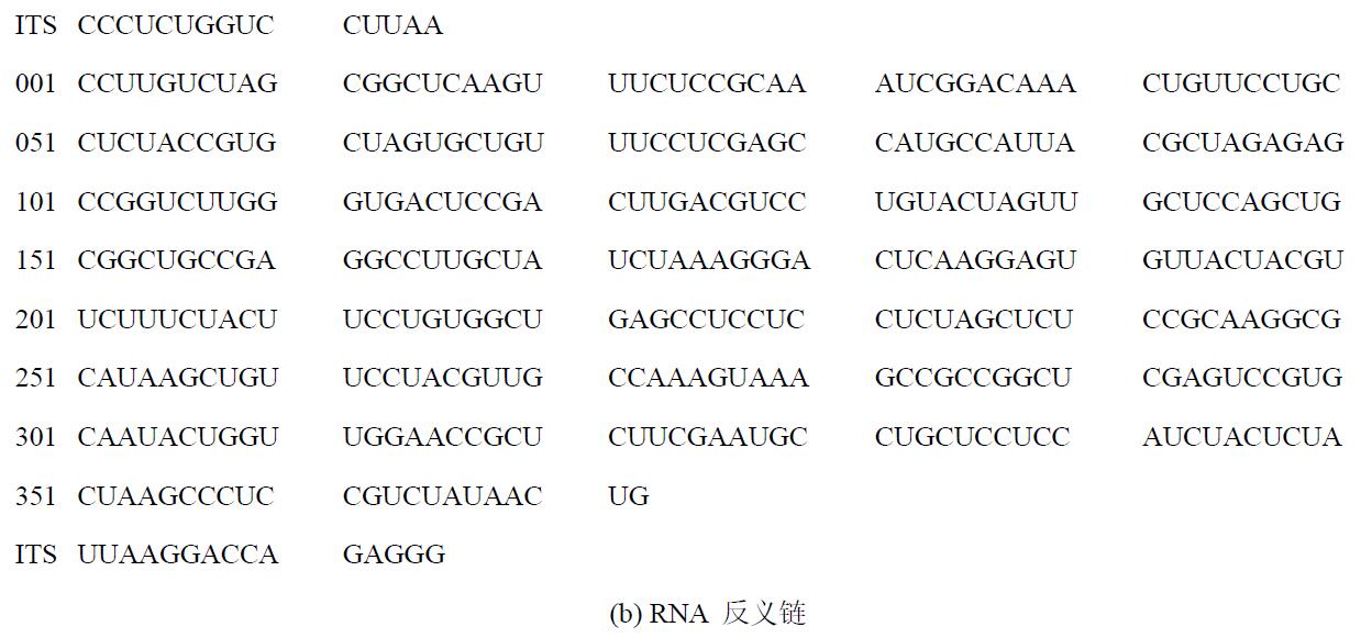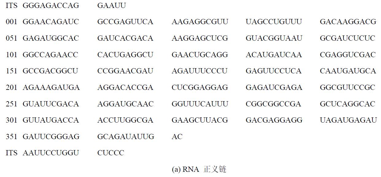 圖6 Vadescana的dsRNA子序列的堿基序列(ITS為內(nèi)部轉(zhuǎn)錄序列)