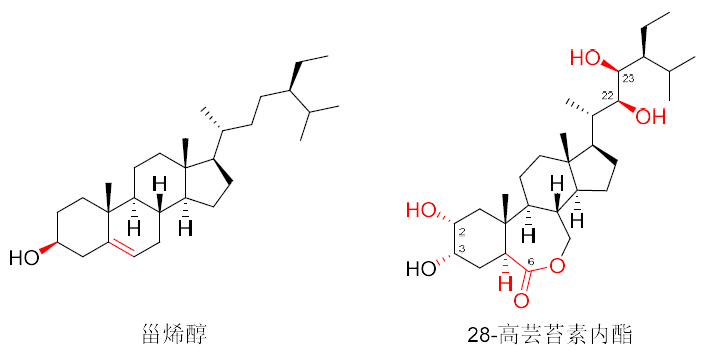 圖13 甾烯醇的化學(xué)結(jié)構(gòu)及與28-高蕓苔素內(nèi)酯的比較