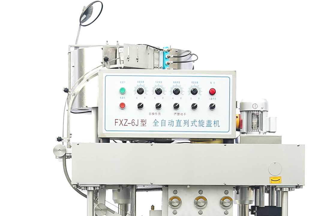 FXZ-6直列式旋蓋機(jī)結(jié)構(gòu)簡(jiǎn)單,操作方便,它采用搓蓋的方式調(diào)節(jié)各部位的配合來(lái)達(dá)到旋蓋的效果。由上蓋、理蓋、反蓋剔除、入滑蓋槽刮蓋、旋蓋、循環(huán)進(jìn)瓶的基本運(yùn)作順序進(jìn)行。